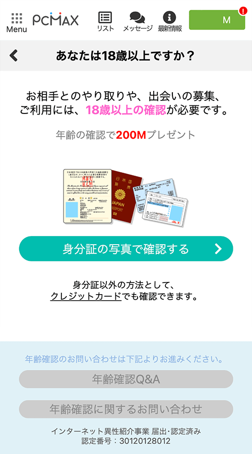 年齢確認を終えないと、ほとんど使えないので注意しましょう!